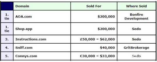 在最近一期的sedo榜中,AOA.com以200000美元(約合人民幣142萬元)成交,并占據榜單第一。